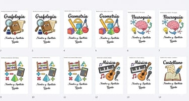 SON MAS DE 50 MATERIAS TANTO EN ESPAÑOL COMO EN INGLES, sin preocupaciones por confusiones o pérdidas. Diseños listos para imprimir y personalizar sin complicaciones.